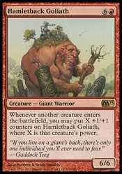 | Card Text | Whenever another creature enters the battlefield, you may put X +1/+1 counters on Hamletback Goliath, where X is that creature"s power. |