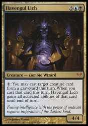 | Card Text | : You may cast target creature card in a graveyard this turn. When you cast that card this turn, Havengul Lich gains all activated abilities of that card until end of turn. |