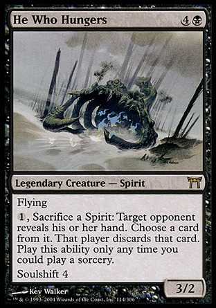 , Sacrifice a Spirit: Target opponent reveals his or her hand. You choose a card from it. That player discards that card. Activate this ability only any time you could cast a sorcery.