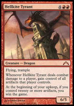 | Card Text | Flying, trample Whenever Hellkite Tyrant deals combat damage to a player, gain control of all artifacts that player controls. At the beginning of your upkeep, if you control twenty or more artifacts, you win the game. |