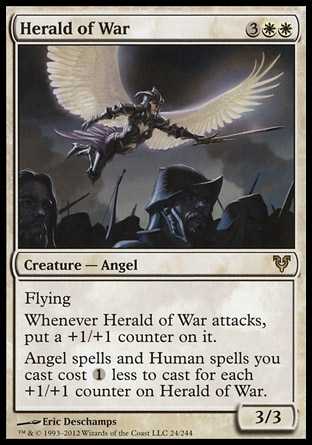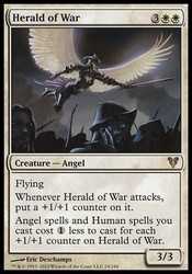 | Card Text | Flying Whenever Herald of War attacks, put a +1/+1 counter on it. Angel spells and Human spells you cast cost |