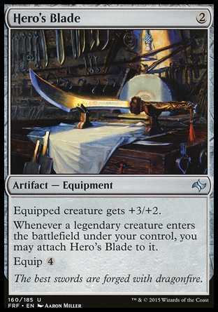 | Card Text | Equipped creature gets +3/+2. Whenever a legendary creature enters the battlefield under your control, you may attach Hero"s Blade to it. Equip |