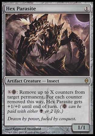 | Card Text | ![]() : Remove up to X counters from target permanent. For each counter removed this way, Hex Parasite gets +1/+0 until end of turn. ( can be paid with either or 2 life.) |
