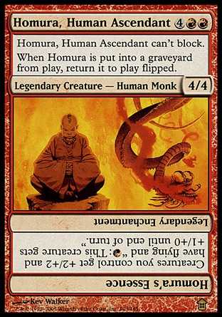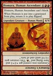 | Card Text | Homura, Human Ascendant can"t block. When Homura dies, return it to the battlefield flipped. |