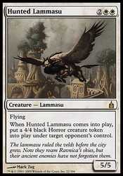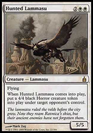 | Card Text | Flying When Hunted Lammasu enters the battlefield, target opponent puts a 4/4 black Horror creature token onto the battlefield. |