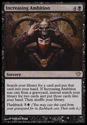 | Card Text | Search your library for a card and put that card into your hand. If Increasing Ambition was cast from a graveyard, instead search your library for two cards and put those cards into your hand. Then shuffle your library. Flashback |