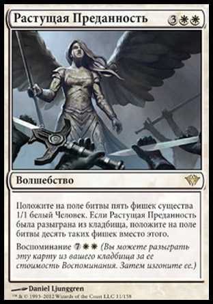 | Card Text | Put five 1/1 white Human creature tokens onto the battlefield. If Increasing Devotion was cast from a graveyard, put ten of those tokens onto the battlefield instead. Flashback |