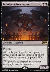 | Card Text | Flying At the beginning of your upkeep, draw a card unless target opponent sacrifices a creature or pays 3 life. |