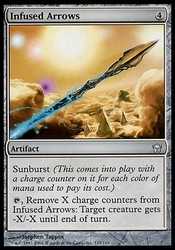 , Remove X charge counters from Infused Arrows: Target creature gets -X/-X until end of turn.