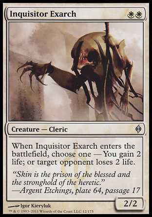 | Card Text | When Inquisitor Exarch enters the battlefield, choose one - • You gain 2 life. • Target opponent loses 2 life. |
