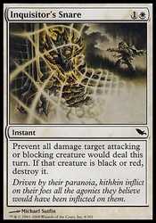 Card TextPrevent all damage target attacking or blocking creature would deal this turn. If that creature is black or red, destroy it.