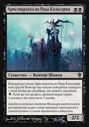 | Card Text | Whenever Kalastria Highborn or another Vampire you control dies, you may pay . If you do, target player loses 2 life and you gain 2 life. |