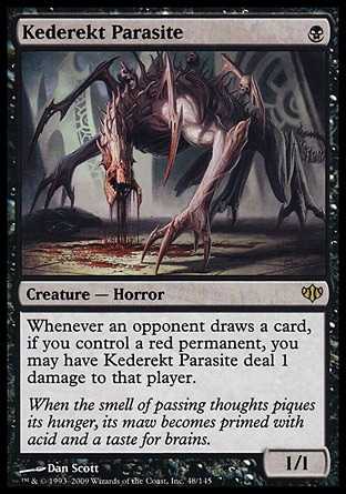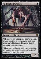| Card Text | Whenever an opponent draws a card, if you control a red permanent, you may have Kederekt Parasite deal 1 damage to that player. |