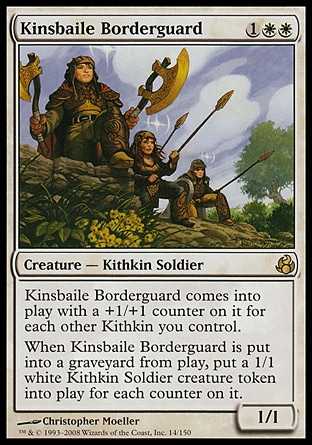 Card TextKinsbaile Borderguard enters the battlefield with a +1/+1 counter on it for each other Kithkin you control.