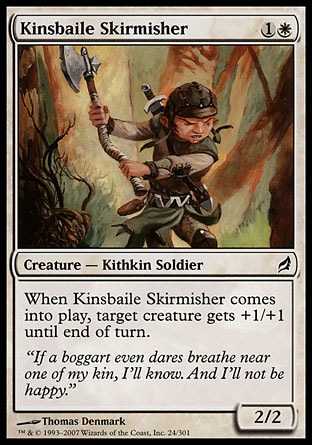 Card TextWhen Kinsbaile Skirmisher enters the battlefield, target creature gets +1/+1 until end of turn.
