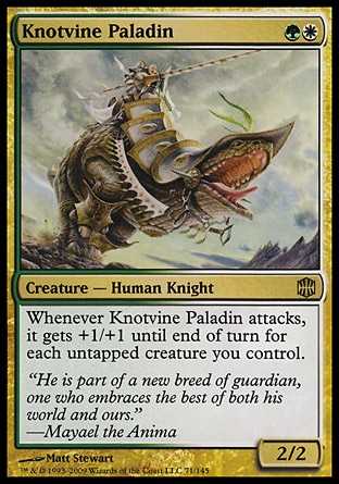 Card TextWhenever Knotvine Paladin attacks, it gets +1/+1 until end of turn for each untapped creature you control.
