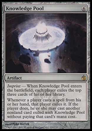 | Card Text | Imprint - When Knowledge Pool enters the battlefield, each player exiles the top three cards of his or her library. Whenever a player casts a spell from his or her hand, that player exiles it. If the player does, he or she may cast another nonland card exiled with Knowledge Pool without paying that card"s mana cost. |