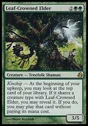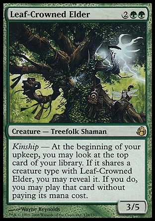Card TextKinship - At the beginning of your upkeep, you may look at the top card of your library. If it shares a creature type with Leaf-Crowned Elder, you may reveal it. If you do, you may play that card without paying its mana cost.