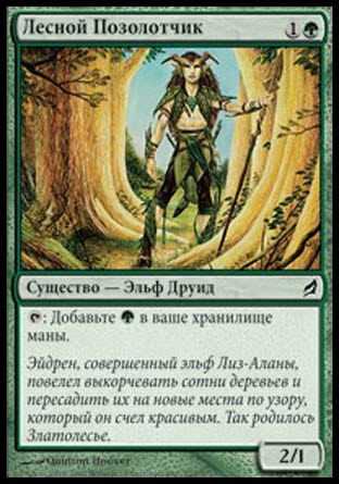 | Flavor | Eidren, perfect of Lys Alana, ordered hundreds of trees uprooted and rearranged into a pattern he deemed beautiful. Thus the Gilt-Leaf Wood was born. |