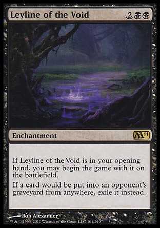 | Card Text | If Leyline of the Void is in your opening hand, you may begin the game with it on the battlefield. If a card would be put into an opponent"s graveyard from anywhere, exile it instead. |