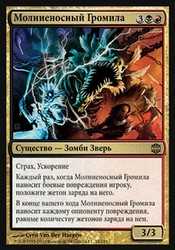| Card Text | Haste; fear (This creature can"t be blocked except by artifact creatures and/or black creatures.) Whenever Lightning Reaver deals combat damage to a player, put a charge counter on it. At the beginning of your end step, Lightning Reaver deals damage equal to the number of charge counters on it to each opponent. |