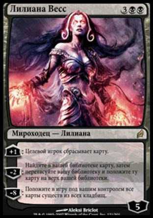 | Card Text | +1: Target player discards a card. в€’2: Search your library for a card, then shuffle your library and put that card on top of it. в€’8: Put all creature cards from all graveyards onto the battlefield under your control. |
