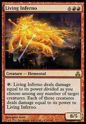 | Card Text | : Living Inferno deals damage equal to its power divided as you choose among any number of target creatures. Each of those creatures deals damage equal to its power to Living Inferno. |