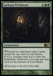 Card TextWhenever an opponent casts a spell, reveal the top card of your library. If it"s a creature card, put it onto the battlefield. Otherwise, you may put that card on the bottom of your library.