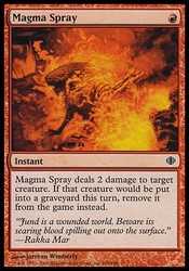 | Card Text | Magma Spray deals 2 damage to target creature. If that creature would die this turn, exile it instead. |