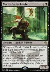 | Card Text | Whenever Mardu Strike Leader attacks, put a 2/1 black Warrior creature token onto the battlefield. Dash |