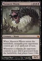 | Card Text | When Massacre Wurm enters the battlefield, creatures your opponents control get -2/-2 until end of turn. Whenever a creature an opponent controls dies, that player loses 2 life. |
