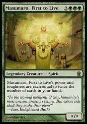 Card TextMasumaro, First to Live"s power and toughness are each equal to twice the number of cards in your hand.