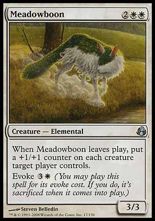 | Card Text | When Meadowboon leaves the battlefield, put a +1/+1 counter on each creature target player controls. Evoke |