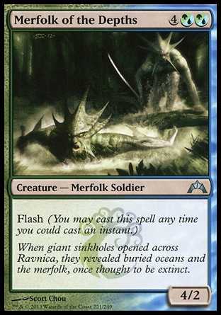 | Flavor | When giant sinkholes opened across Ravnica, they revealed buried oceans and the merfolk, once thought to be extinct. |