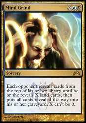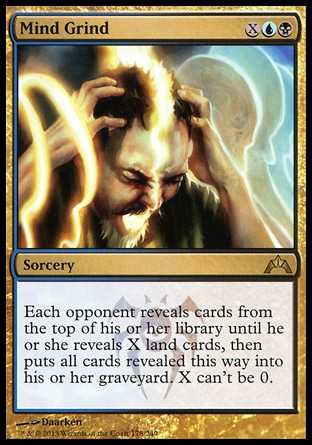 Card TextEach opponent reveals cards from the top of his or her library until he or she reveals X land cards, then puts all cards revealed this way into his or her graveyard. X can"t be 0.