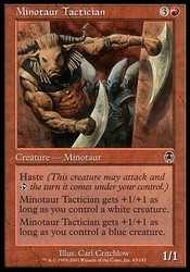 | Card Text | Haste Minotaur Tactician gets +1/+1 as long as you control a white creature. Minotaur Tactician gets +1/+1 as long as you control a blue creature. |