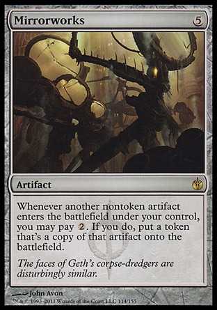 Card TextWhenever another nontoken artifact enters the battlefield under your control, you may pay . If you do, put a token that"s a copy of that artifact onto the battlefield.