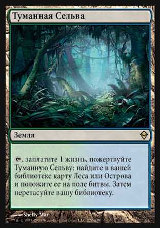 | Card Text | , Pay 1 life, Sacrifice Misty Rainforest: Search your library for a Forest or Island card and put it onto the battlefield. Then shuffle your library. |
