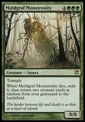 | Card Text | Trample When Moldgraf Monstrosity dies, exile it, then return two creature cards at random from your graveyard to the battlefield. |