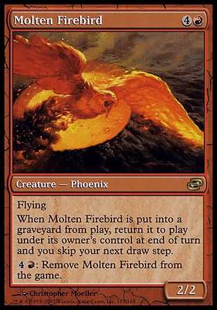 When Molten Firebird dies, return it to the battlefield under its owner"s control at the beginning of the next end step and you skip your next draw step.