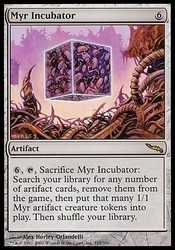 | Card Text | , , Sacrifice Myr Incubator: Search your library for any number of artifact cards, exile them, then put that many 1/1 colorless Myr artifact creature tokens onto the battlefield. Then shuffle your library. |