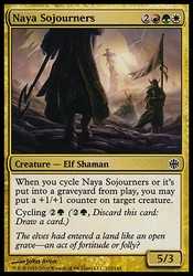 Card TextWhen you cycle Naya Sojourners or it dies, you may put a +1/+1 counter on target creature.