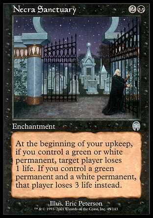 | Card Text | At the beginning of your upkeep, if you control a green or white permanent, target player loses 1 life. If you control a green permanent and a white permanent, that player loses 3 life instead. |