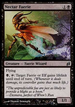 , : Target Faerie or Elf gains lifelink until end of turn. (Damage dealt by the creature also causes its controller to gain that much life.)