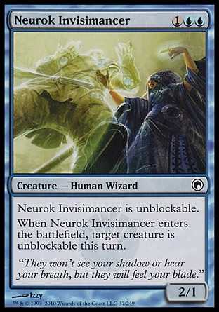 | Card Text | Neurok Invisimancer can"t be blocked. When Neurok Invisimancer enters the battlefield, target creature can"t be blocked this turn. |