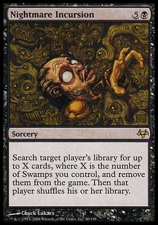 | Card Text | Search target player"s library for up to X cards, where X is the number of Swamps you control, and exile them. Then that player shuffles his or her library. |