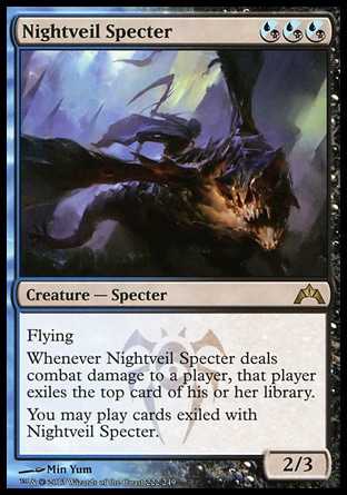 Whenever Nightveil Specter deals combat damage to a player, that player exiles the top card of his or her library.