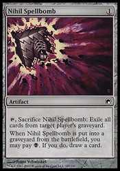 Card Text, Sacrifice Nihil Spellbomb: Exile all cards from target player"s graveyard.