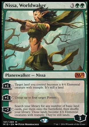 | Card Text | +1: Target land you control becomes a 4/4 Elemental creature with trample. It"s still a land. +1: Untap up to four target Forests. в€’7: Search your library for any number of basic land cards, put them onto the battlefield, then shuffle your library. Those lands become 4/4 Elemental creatures with trample. They"re still lands. |