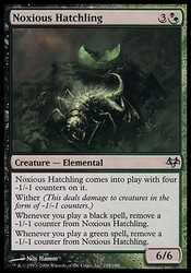 | Card Text | Noxious Hatchling enters the battlefield with four -1/-1 counters on it. Wither (This deals damage to creatures in the form of -1/-1 counters.) Whenever you cast a black spell, remove a -1/-1 counter from Noxious Hatchling. Whenever you cast a green spell, remove a -1/-1 counter from Noxious Hatchling. |